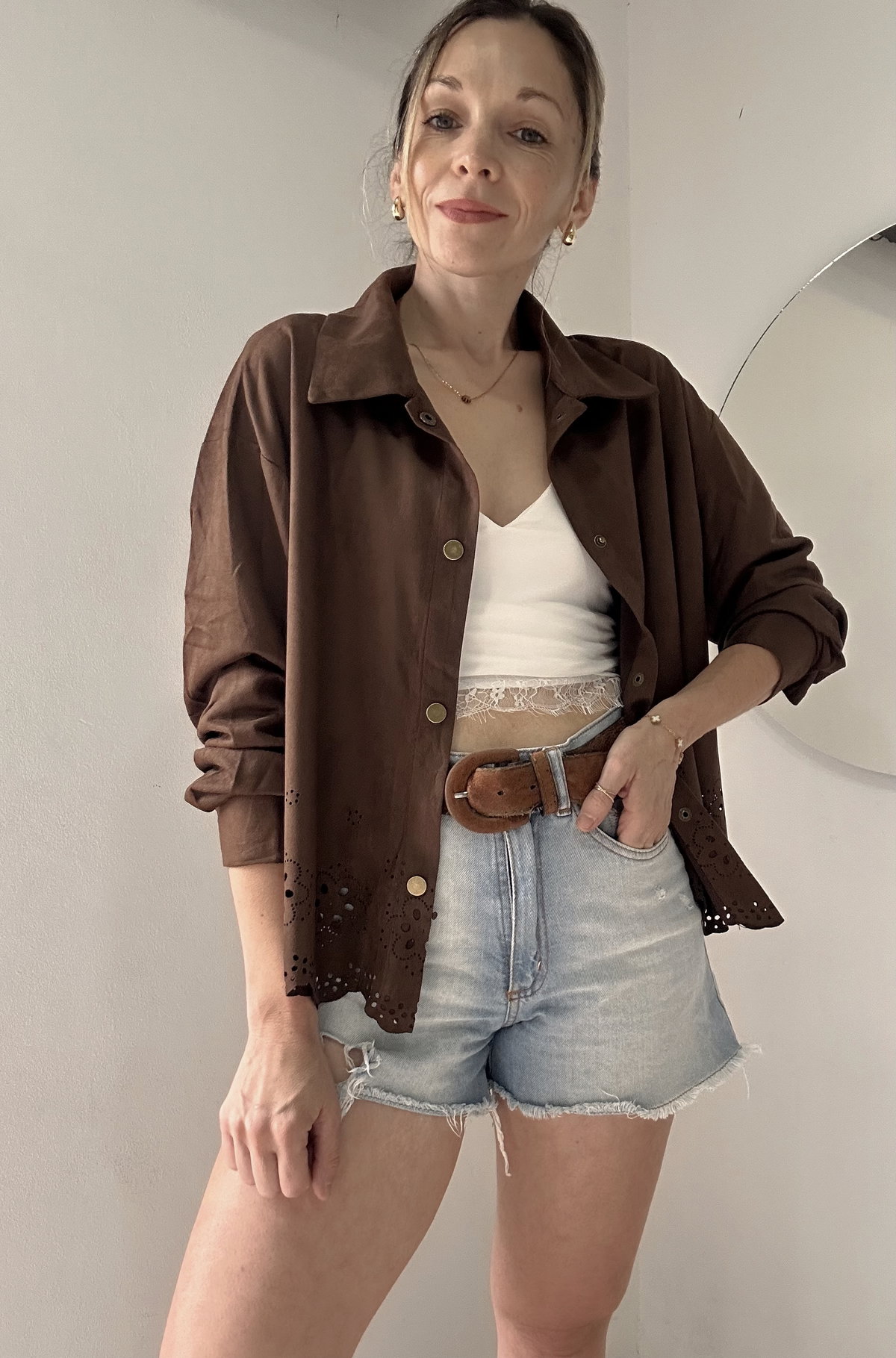 Camisaco Gamuzado con detalles de dibujo calado, la podes usar como Camisa o Camisaco.