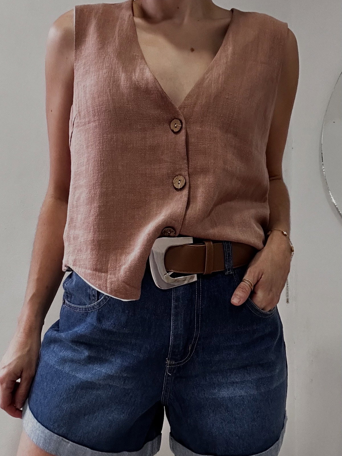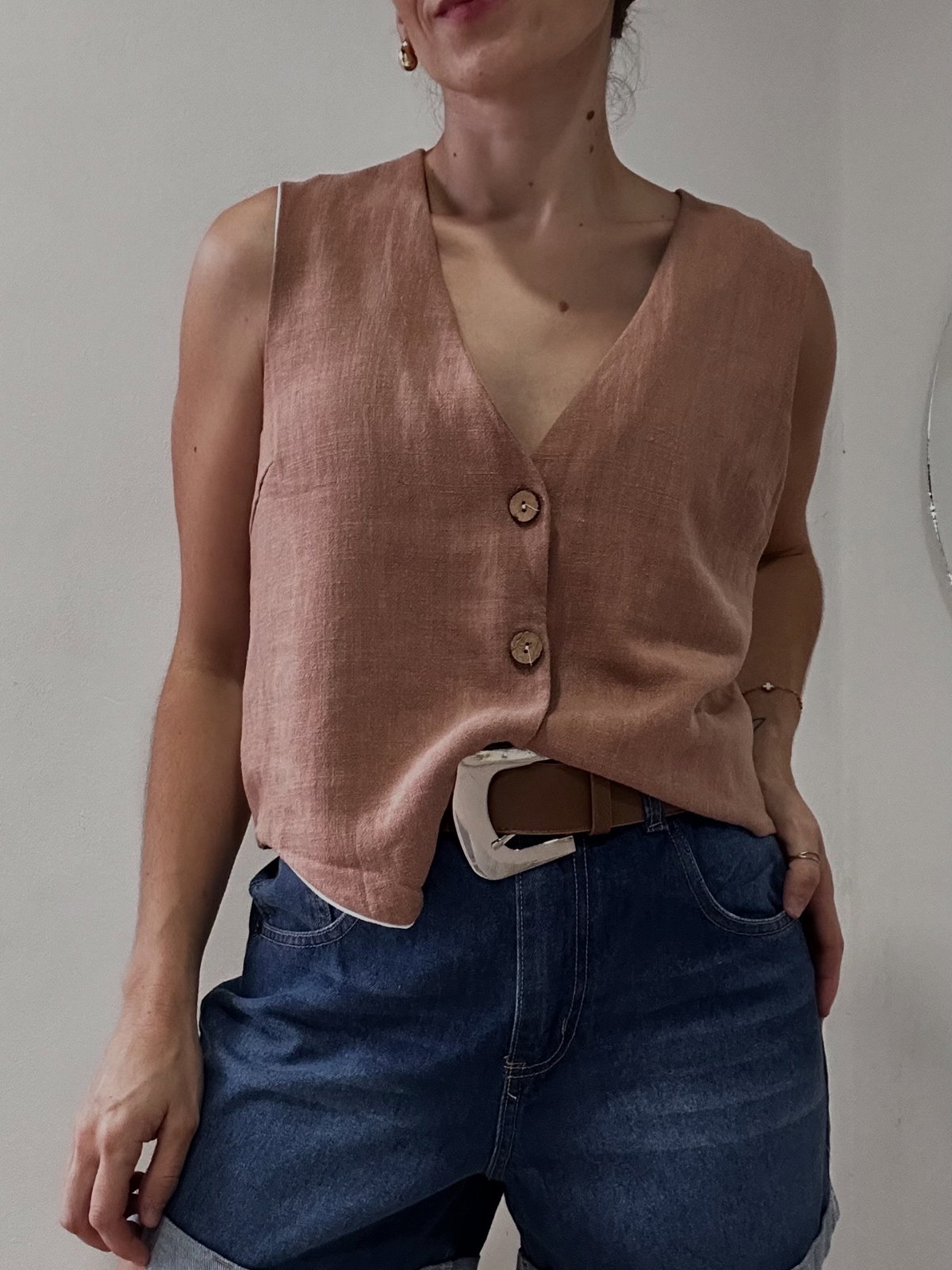 Chaleco de Lino algodón con forraría en poplin. Color choco mousse